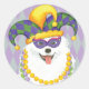 Cute American Eskimo Dog, dressed in festive mask, jester hat and beads, ready for fun on Mardi Gras or at any other time. Great gift for yourself and your Eskie-loving family and friends.