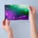 Bright purple and green background with shiny confetti. Festival Mardi Gras.