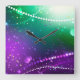 Bright purple and green background with shiny confetti. Festival Mardi Gras.