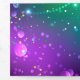 Bright purple and green background with shiny confetti. Festival Mardi Gras.