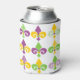 This can cooler has a Mardi Gras design of fleur de lis lined across the design with different design in them. The text is customisable.
