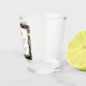 1.5 oz. shot glass with an image of colourful feathered and sequined masks, jester hats, a feathered hat, balloons, beads, coins, stars, and gold ribbons on black around a white square with a gold border, a fun feathered Mardi Gras mask and “Mardi Gras Fun” in purple French script. See the entire Mardi Gras Shot Glass collection in the FOOD/BEV | Dishes section.