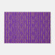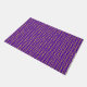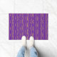 This doormat has a geometric Mardi Gras design of sort of flat-ended ovals repeating across the design in gold and green on a field of purple.