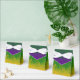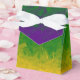 Mardi Gras swirls favour boxes were inspired by the colours, green is for faith, gold represents power and purple stands for justice.