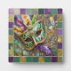 Mardi Gras Green and Gold Colourful Feathers Mask Plaque