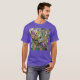 I give wanted to give this a 4 instead of a 5 because these Basic DARK T0shirts run unexpectedly SLIM or Narrow. Which is great if you do not have a potbelly, but I have a paunch. It isn't the shirt's fault that I've got a beer belly. The design and shirt itself is a quality cotton shirt. The color is more of a deep purple, but still a very pretty color. The Basic DARK T-shirts run a bit SLIMMER than the Basic Ts. The neck is a fraction narrower (or seems to be narrower) also. I'm a paunchy middle-aged woman and my neck is 12 inches (31cm) thick and the neckline fell about the same as in the photo of the man, and I had the desire to tug it a bit. So if you're a thick necked man or like loose shirts, be aware these are slimmer shirts. Once I get rid of my lockdown paunch it'll look great. The shirt washed well in cold water with no apparent bleeding. We don't have a dryer, so it hung dry. Did not shrink. Love the colors and the design. The design looks smaller on my shirt than it does on the model on-line. But still, it looks good on the shirt. The printing looks as it does on the model, just the size seems fractionally smaller. Washed garment in cold water, hung dry and design appeared unaffected.
