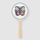 This paddle fan is shown in a festive Mardi Gras mask print.