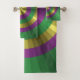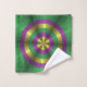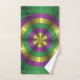 If you love Mardi Gras, this design will be great for you. It features shades of green, gold, and purple arranged in rings from dark to light that gives the circle a 3D look. This towel set can be bought all together or as separate pieces.