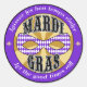 Mardi Gras seal/ badge design with a masquerade mask, harlequin diamond pattern, and the slogan "Laissez bon temps rouler"/ "Let the good times roll".