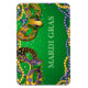 This flexible magnet is shown in a festive Mardi Gras mask print.