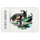 This flexible magnet is shown in a festive Mardi Gras mask print.