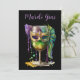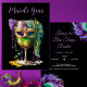 Festive New Orleans Mardi Gras themed party favour in green gold and purple, the traditional colours of Fat Tuesday carnival. Perfect invite for NOLA themed parties. Wavy faux glitter design.