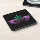 Mardi Gras Mask Purple Green Gold Sparkles black Coaster