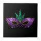 Mardi Gras Mask Purple Green Gold Sparkles black Tile