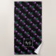 Mardi Gras Mask Purple Green Sparkles Monogram Beach Towel