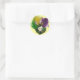 Design features a mask decorated with a Mardi Gras Indian motif.