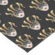 This table runner is shown with a black background colour with a festive Mardi Gras festival mask print design.