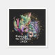 These gorgeous and dramatic Mardi Gras paper napkins are available in various sizes and features a double masquerade mask design on a dramatic black background. You can update the text and year prior to placing into your shopping cart.