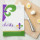 Mardi Gras NAME Green Gold Purple Fleur de Lis Tea Towel
