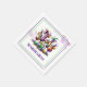This paper napkin is shown in a festive Mardi Gras drinks celebration print.