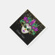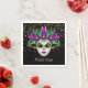 This standard cocktail size paper napkin is shown with a festive Mardi Gras carnival mask print on a black background colour.