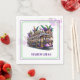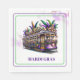 This paper napkin is shown in a festive Mardi Gras trolley car celebration print.