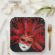 This paper plate is shown with a festive Mardi Gras carnival mask print.