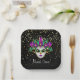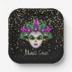 This paper plate is shown with a festive Mardi Gras carnival mask print.