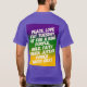 I give wanted to give this a 4 instead of a 5 because these Basic DARK T0shirts run unexpectedly SLIM or Narrow. Which is great if you do not have a potbelly, but I have a paunch. It isn't the shirt's fault that I've got a beer belly. The design and shirt itself is a quality cotton shirt. The color is more of a deep purple, but still a very pretty color. The Basic DARK T-shirts run a bit SLIMMER than the Basic Ts. The neck is a fraction narrower (or seems to be narrower) also. I'm a paunchy middle-aged woman and my neck is 12 inches (31cm) thick and the neckline fell about the same as in the photo of the man, and I had the desire to tug it a bit. So if you're a thick necked man or like loose shirts, be aware these are slimmer shirts. Once I get rid of my lockdown paunch it'll look great. The shirt washed well in cold water with no apparent bleeding. We don't have a dryer, so it hung dry. Did not shrink. Love the colors and the design. The design looks smaller on my shirt than it does on the model on-line. But still, it looks good on the shirt. The printing looks as it does on the model, just the size seems fractionally smaller. Washed garment in cold water, hung dry and design appeared unaffected.