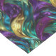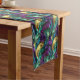 This table runner is shown with a colorful Mardi Gras pattern print.