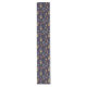 This table runner is shown with a colorful Mardi Gras pattern print.