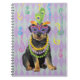 Cute Rottweiler puppy, dressed in festive feather mask and beads, ready for fun on Mardi Gras or at any other time. Great gift for yourself and your Rottie-loving family and friends.