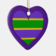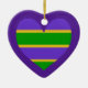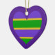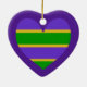 Mardi Gras Striped Purple Heart Ceramic Tree Decoration