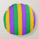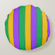 Mardi Gras Stripes Pattern Purple Green Yellow Round Cushion