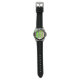This men's watch has a simple Mardi Gras design of vertical stripes in yellow, green, and purple.
