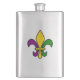 Design with seamless pattern with fleur-de-lys (lilly flowers) in the colours of New Orleans Mardi Gras; purple, golden and green design on white background