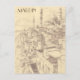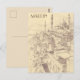 This travel postcard, in hand drawn sketch-style, showcases a sketch of the historic Turkish city of Mardin.