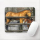 This mousepad features a buckskin mare and her bay foal, standing beside a fence in a snowy winter landscape. Horse lovers will enjoy this mousepad.
