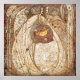 Soft and romantic, this poster celebrates the beauty of the figures and the gesso details in muted tones of the original work "The Heart of the Rose". It dates to 1901 by the Scottish artist Margaret MacDonald Mackintosh.
