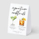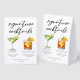 This wedding bar signature cocktails table tent sign features simple black typography above 2 of your favorite drinks and their ingredients for your reception. A chic Margarita and Dark And Stormy drawing add a fun flair to your bar menu. Complete with the couple's names and date for their reception.