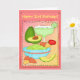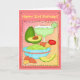 Wish a friend a Happy 21st Birthday with this colourful birthday greeting card. The words on the front are fully customisable so you can change to another year or delete the number to just say "Happy Birthday" or other greeting. The sentiment message inside can also be changed to words of your choice. A margarita, avocado, pepper, guacamole and chips are on the front. A margarita is also on the inside. The background colours are a combination of coral and coral/yellow texture. Other colours include green, lime green, red and turquoise blue. A thick black serpentine curvy line outlines the art. This design is original art by Phyllis Dobbs and coordinates with other products in this store.