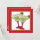 Two margaritas in salt-lined glasses with lime. Border in bright red. Great for Cinco de Mayo or any Mexican-themed event of birthday party.