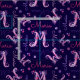 Modern decorative hand drawn graphic monogram initial letter M and name repeat patterned fabric. Pretty doodled art monogrammed M hand drawn design embellished with flowers and hearts. Personalise with your own letter M name choice (please note not all names will fit due to the nature of the font) currently reads Maria other name lengths are available, if you need assistance contact me, I am happy to post one for your name. Fabric in shades of pink and purple on a navy dark blue background which can be changed if required. A great way to personalise your sewing and quilting projects. Ideal for a girls personalised named sewing projects. Original art and design by Sarah Trett for www.mylittleeden.com