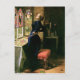 Mediaeval inspired maiden stands up and stretches in front of stained glass windows. Vintage fine art painting by English artist John Everett Millais 1858. Pre Raphaelite era.