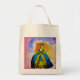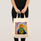 The printing came out very well, better than I had anticipated. The natural color fabric is sturdy with strong seams and comfortable handles. This tote fits easily over my shoulder. As it is filled, the bottom flattens out--very cool! I would buy this product again. This grocery tote holds a lot of groceries! The image quality was very good. The colors were a little darker than I had expected. The darkness may have been due to printing on a natural color fabric rather than on white. The cat design is attractively centered on the tote. The spirit of the design is very lively, just as it appears on the Zazzle website.