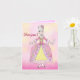 Note card features illustration of Marie Antoinette against a misty pink and lemon background. Front of note card says 'Bonjour!' but can be changed to your own personal greeting. Change it to Merci for thank you notes or leave blank. Shown blank inside.