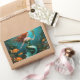 “Marielle” – Beautiful Dancing Mermaid. Aquatic Ballet: In this mesmerising image, a stunning mermaid with flowing red hair dances gracefully on the seabed, her green and blue fishtail sparkling in the water. Surrounded by an underwater garden of fish and coral, she appears to be moving to the rhythm of gentle aquatic tunes. The scene, filled with subtle multi-coloured hues, captures the serene, flowing beauty of this stylised Pre-Raphaelite art. Have you ever seen a mermaid dance so elegantly in the deep blue sea?