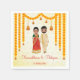 Marigold garlands bells with Tamil Telugu South Indian wedding personalised name napkins.