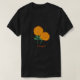 Black fitted t-shirt with a beautiful marigold orange flower design.