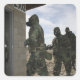Marines and Sailors file into the gas chamber featured with camouflage.